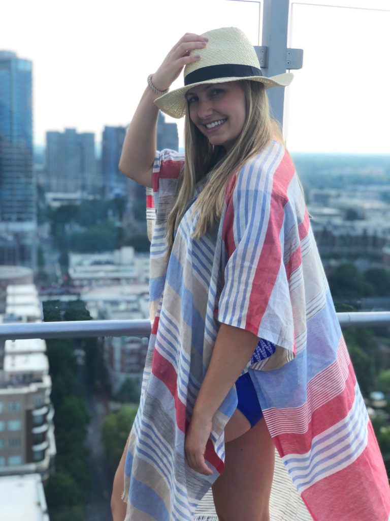 This coverup would have been perfect for a Fourth of July pool party or boat day! It’s from Anthropologie and is on sale right now. Snag it for next year! I love the red, white, and blue colors with the metallic threading. It’s a cute patriotic cover-up that you can wear any day of the year and isn’t too over-the-top. My hat is also on sale from Banana Republic. It took me a little too long to get down with the hats but now I am in love! A great thing about this pick is that it comes in two sizes S/M and L/XL and is “packable”. Packable means that you can fold it up and flatten it in your suitcase and know it will bounce back to its original shape!