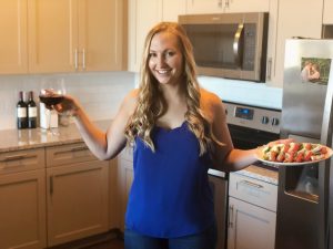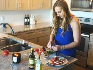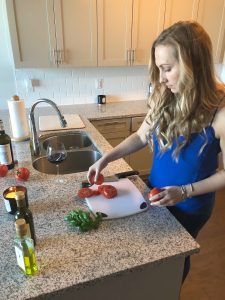 If you’ve never made or tried caprese salad, I definitely recommend trying it! It’s super easy and tastes like fresh summer-goodness! All you need are tomatoes, (I like to get local tomatoes and take advantage of the time of year they’re in season), mozzarella cheese that is in water, basil, (which is super easy and inexpensive to grow yourself), olive oil, and balsamic vinegar.